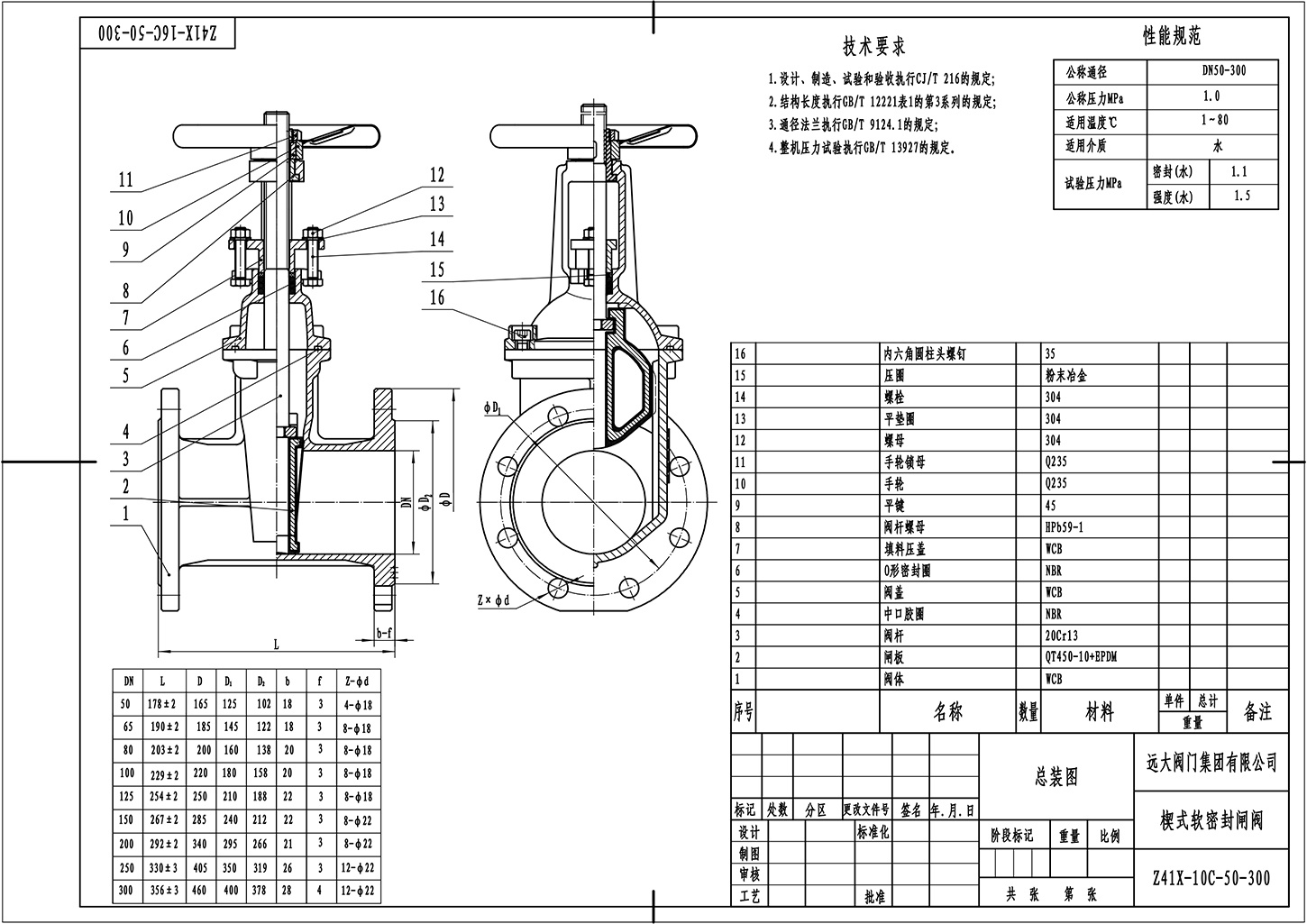 | 闸板 | 球铁(QT450-10)+丁腈橡胶(NBR) |