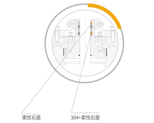 ⊙ 改进填料部位结构,填料函底部放置两圈石墨+不锈钢编制的盘根,以利用其强度较高(与纯柔性石墨环相比)的特点阻止石墨被挤入阀腔和阀外,盘根上面再增加三圈纯柔性石墨,利用柔性石墨的润滑性减少对阀杆的摩擦减少了阀门的开启扭矩,柔性石墨环上部再增加两圈石墨盘根,以此叠加放置,起到了填料多层次密封效果,提高了阀杆填料密封性能。